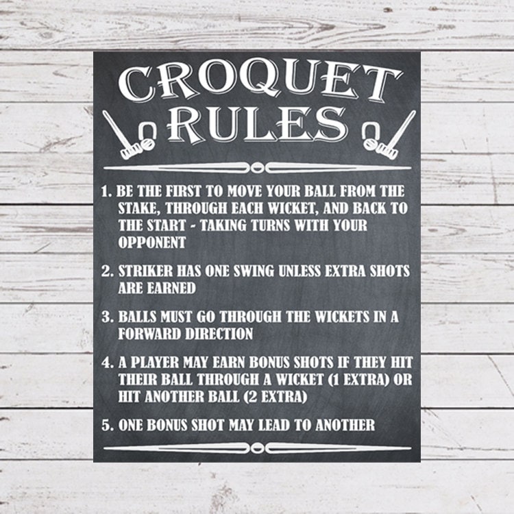 Yard Games Croquet Sign Croquet Rules Instructions Outdoor ... from i.etsystatic.com Use chalk or tape to mark out the boundaries for the croquet court. Toss a coin to start the game. How do you crochet a heart? These can be balls, handkerchiefs, keys, etc. They will play the blue and black balls. You have to know how to set up the playing court when mastering how to play croquet for beginners. Divide players into two teams: If you have any uneven spaces in your lawn, be sure to set the course up away from these.